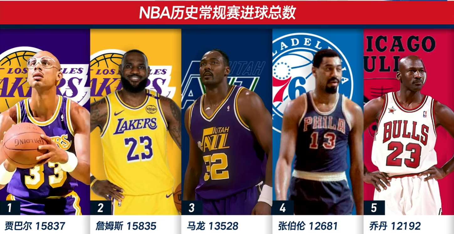 赛前詹姆斯个人生涯的总进球数是15827个,历史第一贾巴尔进球数是15837个,他只差10个进球就可以追平历史第一,只要进11个球就可以单独成为NBA历史进球榜排名第一,而是东契奇真的不怎么给他传球。
